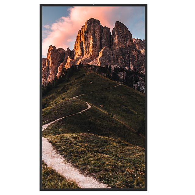 Su diseño permite instalación en orientación vertical u horizontal, y al integrarse con software de gestión de contenidos, son ideales para escaparates, vestíbulos, señalización digital y publicidad en exteriores.